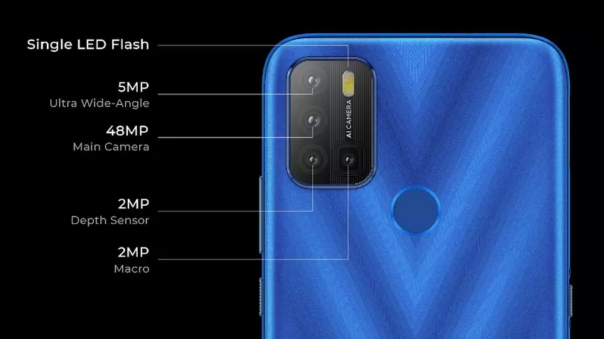 Do selfies służy przednia kamera 8 MP. Główny aparat składa się z czterech modułów: 48 MP głównego czujnika, 5 MP ultraszerokokątnego obiektywu, 2 MP kamery makro i 2 MP czujnika głębi.