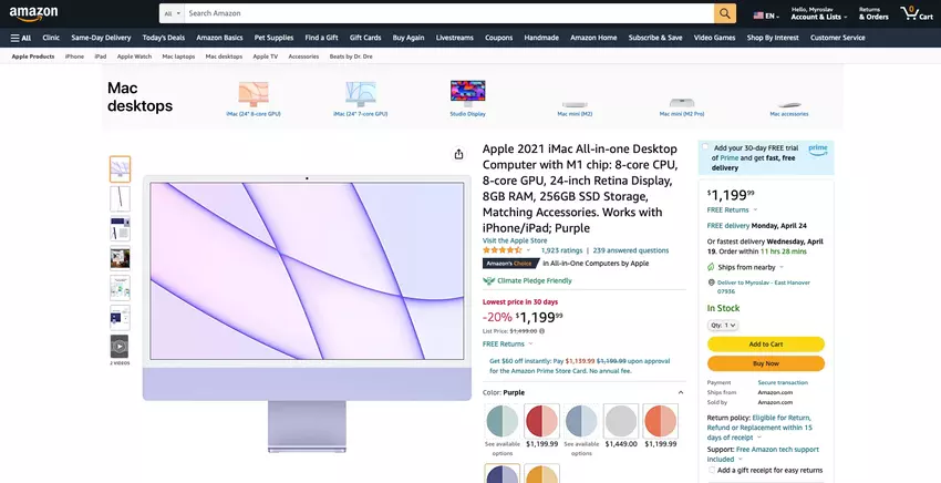 iMac z układem M1 i dyskiem SSD 256 GB lub 512 GB dostępny za 300 dolarów taniej na Amazonie