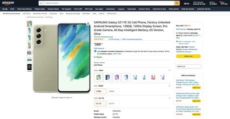 - Samsung Galaxy S21 FE Olive, 128GB - check price on amazon.