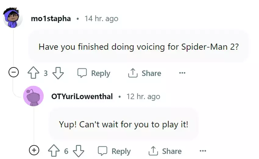 W szczególności jeden gracz zapytał Lowenthala, czy ukończył Marvel's Spider-Man 2, a ten odpowiedział: "Tak, nie mogę się doczekać, aby przejść grę".