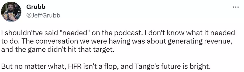 Ze swojej strony Grubb zatweetował, że jego słowa były nieco pochopne. Przeprosił albo próbował zmienić temat, ale stoi przy tym, że "gra nie przyniosła pożądanych dochodów".