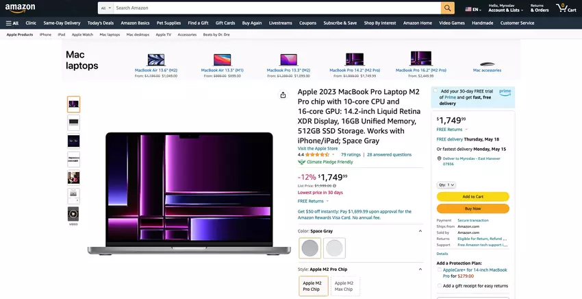 14-calowy MacBook Pro z układem M1 Pro i dyskiem SSD 512 GB w sprzedaży na Amazonie za 249 dolarów taniej
