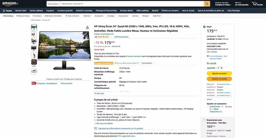Mowa o modelu HP 24mq z 23,8-calowym wyświetlaczem za 175 check price on amazon euro check price on amazon). Monitor ma matrycę IPS o rozdzielczości 2560×1440p (QHD), częstotliwości odświeżania 60 Hz, proporcjach 16:9 i kontraście 1000:1. Deklarowany czas reakcji to 5 ms, a kąty widzenia to 178°.