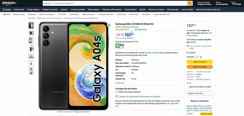Urządzenie jest sprzedawane za 158,99 € 179,00 €, -11%. Smartfon jest dostępny tylko w czarnym kolorze. Gadżet posiada 6,5-calowy wyświetlacz LCD o rozdzielczości HD+, częstotliwości odświeżania 90 Hz i maksymalnej jasności 400 nitów.