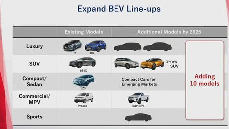 Japoński producent planuje wprowadzić na rynek 10 nowych pojazdów elektrycznych do 2026 roku. Na liście znajdą się nowe SUV-y, dwa luksusowe modele, a nawet jeden samochód sportowy.