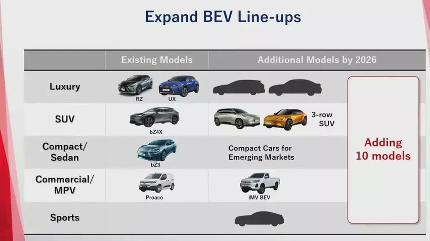 SUV, samochód luksusowy i sportowy: Toyota planuje wprowadzić 10 nowych pojazdów elektrycznych do 2026 r.