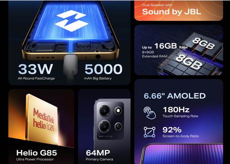 Infinix Note 30i - Helio G85, aparat 64 MP, głośniki stereo JBL i Android 13