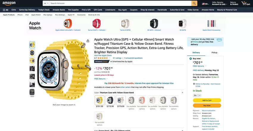 Najwyższej klasy smartwatch Apple Watch Ultra po raz pierwszy można kupić ze zniżką na Amazon.