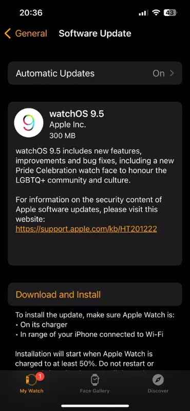 System został wydany z numerem kompilacji watchOS 9.5 i waży 300 MB.