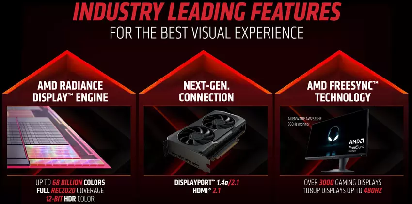 Radeon RX 7600 pobiera 165W i posiada jedno 8-pinowe złącze zasilania. Karta graficzna posiada złącze DisplayPort 1.4, ale w niektórych wersjach wykonywanych przez partnerów może być ono nieobecne. Jest też HDMI 2.1 i PCIe 4.0 (x8).