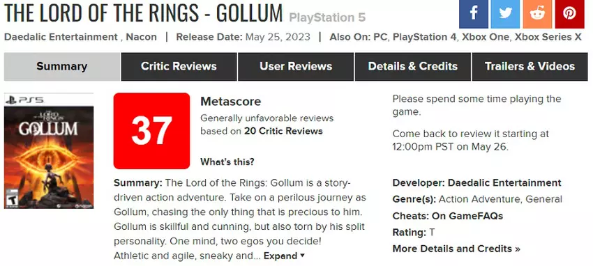 Krytycy są zgodni: Władca Pierścieni: Gollum to gra nudna, monotonna, przestarzała i wtórna. Najwymowniej świadczą o tym oceny na agregatorach: