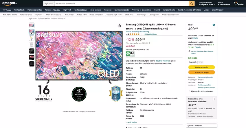 Mowa o modelu z 2022 roku - Samsung QE43Q65B. Telewizor jest teraz w sprzedaży za check price on amazon.
