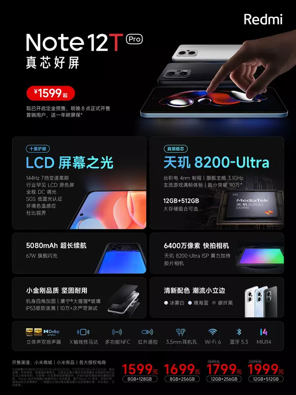 Xiaomi ujawnia cenę Redmi Note 12T Pro z ekranem 144 Hz i układem Dimensity 8200 Ultra