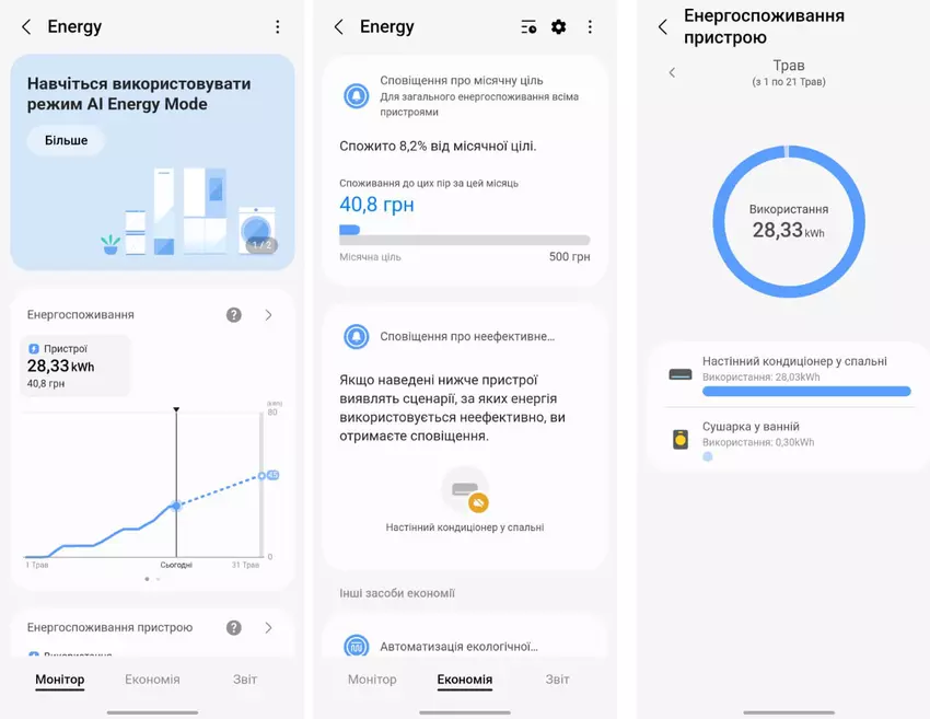 Inteligentna konsumpcja również staje się częścią naszego życia i nie chodzi tu tylko o Gretę Thunberg. Aplikacja SmartThings może pomóc śledzić zużycie energii i uniknąć niepotrzebnego zużycia. Na przykład wyśle ci wiadomość, jeśli nie zamkniesz drzwi inteligentnej lodówki lub poinformuje cię, które inteligentne urządzenia zużywają dużo energii, gdy nie ma cię w domu. Możesz przeglądać miesięczne statystyki i zmieniać tryby swoich urządzeń za pomocą kilku kliknięć. Możesz nawet ustawić rzeczywisty koszt za kilowat w swoim domu, ustawić miesięczne cele wydatków i śledzić swoje postępy.