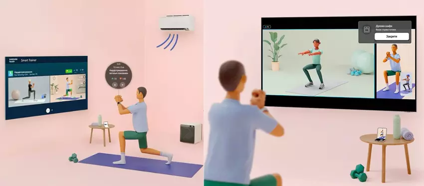 Urządzenia SmartThings pozwalają dbać o kondycję fizyczną, mogą zastąpić trenera i stworzyć własny harmonogram ćwiczeń, aby osiągnąć te cele: wybrać konkretne ćwiczenia i ustawić mobilny ekran na telewizorze Samsung, aby zobaczyć dokładnie, jakie ćwiczenia należy wykonać. Aby to zrobić, należy zainstalować aplikację Samsung Health, która zapewni dodatkowe funkcje. Na przykład smartwatch będzie monitorował kondycję fizyczną użytkownika i wykonywał wszelkie niezbędne obliczenia ruchu. Wynik można następnie zobaczyć w aplikacji w postaci wykresów i obserwować postępy treningu.