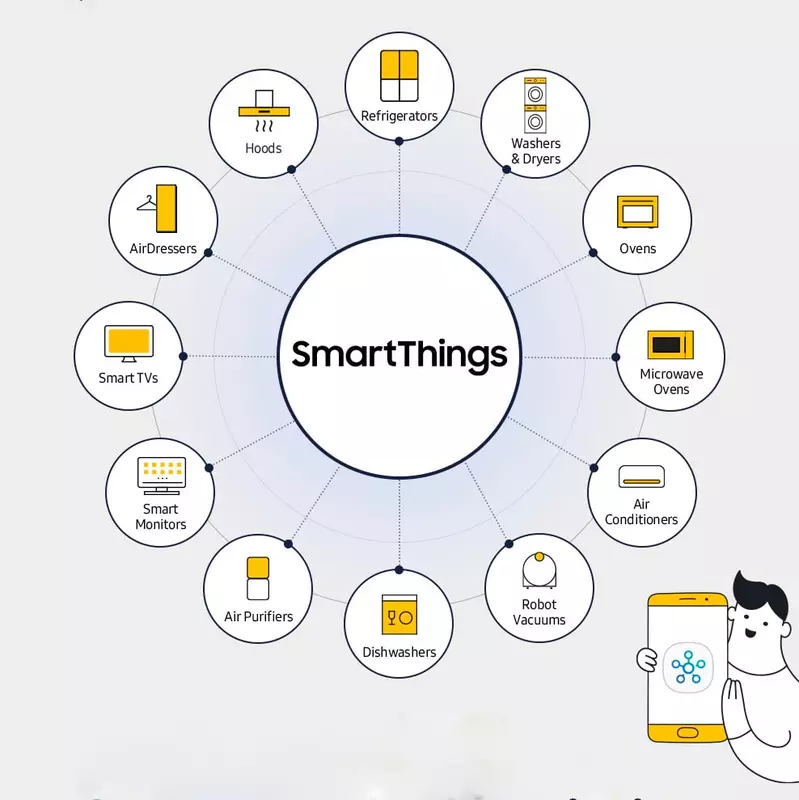 Inteligentny dom to dość wielowarstwowa koncepcja, obejmująca wszystkie obszary naszego życia, od pracy i wypoczynku, opieki nad zwierzętami domowymi po zdrowie, komfort i przytulność oraz gotowanie. Dlatego Samsung dzieli wszystkie urządzenia i scenariusze automatyzacji na kilka obszarów.