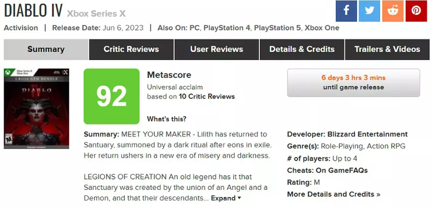 Agregatory opublikowały oceny Diablo IV i w pełni pokazują one jakość gry: