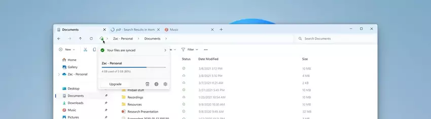 "Nowy pasek adresu inteligentnie rozpoznaje foldery lokalne i foldery w chmurze z wbudowanym statusem" - mówi Brandon LeBlanc, starszy menedżer programu - "Użytkownicy OneDrive zauważą, że pasek adresu zawiera teraz status synchronizacji OneDrive i wyskakujące okienko przydziału".