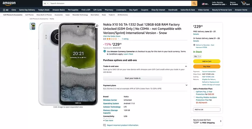 Nokia X10 na Amazon: obsługa 5G, aparat ZEISS i procesor Snapdragon 480 za 40 USD taniej