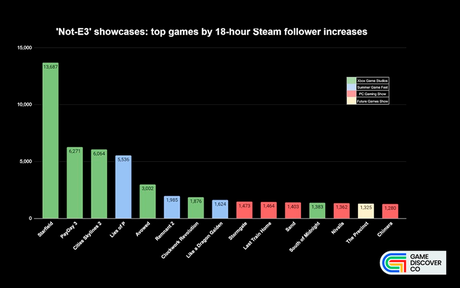Jeśli policzymy gry według liczby nowych subskrybentów na Steam, liderami są Starfield (13 600 nowych subskrybentów), PayDay 3 (6 200) i Cities Skylines 2 (6 000). Nawiasem mówiąc, wszystkie trzy gry zostały pokazane na Xbox Games Showcase.