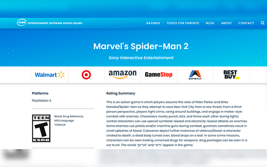 ESRB, organizacja zajmująca się oceną i przypisywaniem klasyfikacji wiekowych do gier wideo, opublikowała więcej informacji na temat Marvel's Spider-Man 2, z których dowiedzieliśmy się nieco więcej o grze i ocenie, jaką otrzymała.