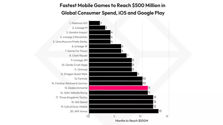 Statystyki pokazały, że mobilna wersja Diablo uplasowała się na 15. miejscu na liście gier mobilnych, które najszybciej przyniosły taką sumę pieniędzy.