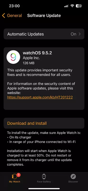 Nowe oprogramowanie układowe można już pobrać i zainstalować za pośrednictwem aplikacji Watch na telefonie iPhone. Zegarek musi być naładowany i mieć co najmniej 50% żywotności baterii. Nawiasem mówiąc, Apple zaleca zainstalowanie systemu tak szybko, jak to możliwe.