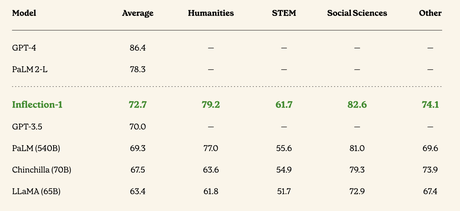 Inflection zauważa, że spodziewa się opublikować wyniki dla większego modelu porównywalnego z GPT-4 i PaLM-2.