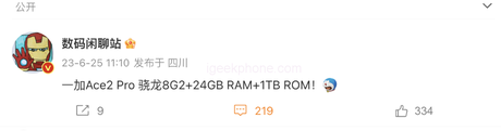 I tak, chiński insider Digital Chat Station zapewnia, że jedna z wersji OnePlus Ace 2 Pro otrzyma aż 24 GB pamięci RAM i 1 TB pamięci wewnętrznej. Komentatorzy spekulowali, że jest to jakaś technologia oprogramowania, która dodaje wirtualne gigabajty pamięci. Jednak insider zaprzecza temu i zauważa, że smartfon będzie wyposażony w 24 GB dokładnie fizycznej pamięci RAM.