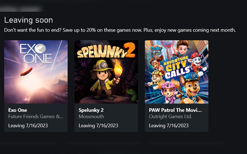 Game Pass zaktualizował sekcję "Wkrótce zniknie", która zawiera listę gier, które znikną z subskrypcji na zawsze 16 lipca.