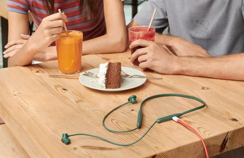 Słuchawki są wyposażone w pałąk na szyję i stopień ochrony IP55 przed wilgocią i kurzem. Oferują również flagową hybrydową redukcję szumów do 45 dB, zapewniając w ten sposób reprodukcję dźwięku bez zakłóceń. Trzy mikrofony z obsługą sztucznej inteligencji eliminują zewnętrzne szumy podczas rozmów telefonicznych.