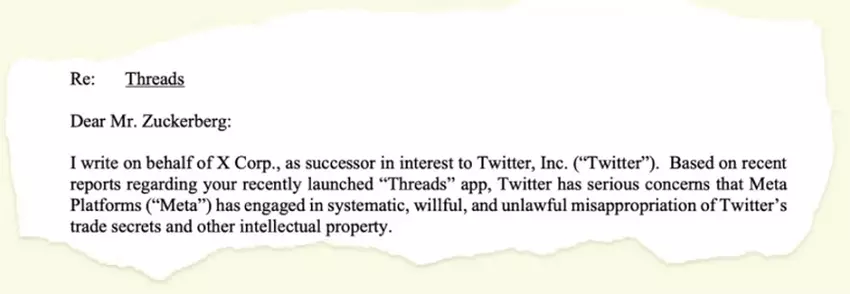 Zespół Marka Zuckerberga nie ukrywał, że Threads jest analogiem Twittera: ma tę samą koncepcję, projekt wizualny i implementację techniczną. Dlatego też prawnicy Elona Muska oficjalnie zagrozili pozwaniem Meta na podstawie tego, że ten ostatni wykorzystał poufne dane Twittera.