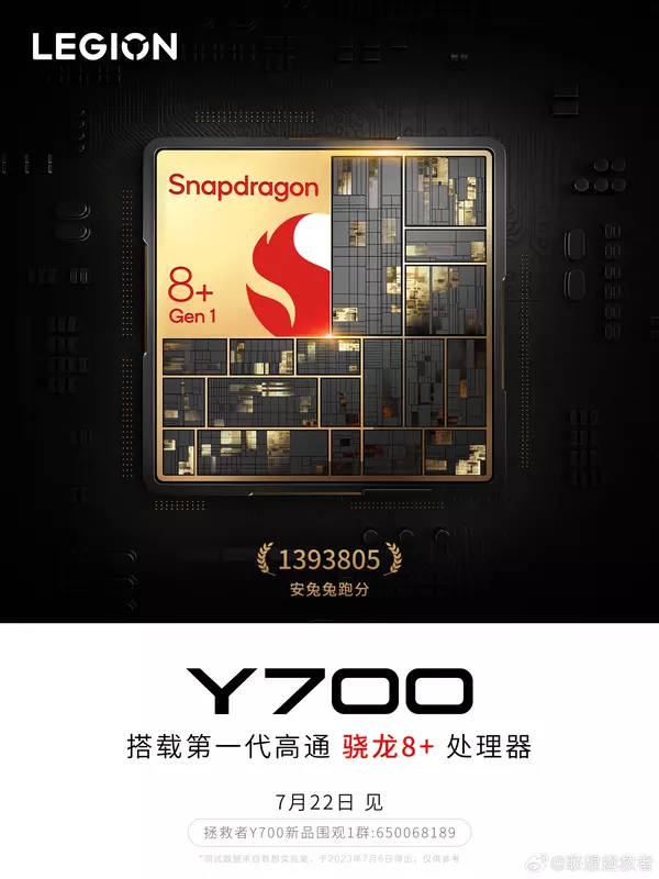 Według plakatu nowość otrzyma ulepszony procesor. Mowa o zeszłorocznym flagowym chipsecie Snapdragon 8+ Gen 1. Dla porównania, obecny Legion Y700 posiada układ Snapdragon 870. Dzięki nowemu SoC, Legion Y700 (2023) odnotuje wzrost wydajności: w trybie wielordzeniowym o 31%, a w trybie jednordzeniowym o 23%.