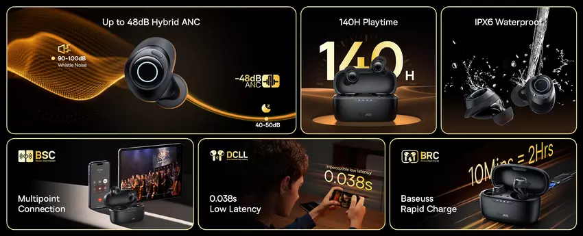 Nowość ma konstrukcję próżniową i może pochwalić się hybrydowym systemem aktywnej redukcji szumów (ANC) i środowiskowej redukcji szumów (ENC). Słuchawki obsługują łączność Bluetooth 5.3 z niskim opóźnieniem wynoszącym 0,038 sekundy. Baseus wyposażył również nowy produkt w podwójną membranę pokrytą tytanem klasy lotniczej. Urządzenie ma stopień ochrony przed wodą i potem IPX6. Jeśli chodzi o autonomię, będzie ona trwać do 8 godzin. Etui zwiększy tę liczbę do rekordowych 140 godzin.