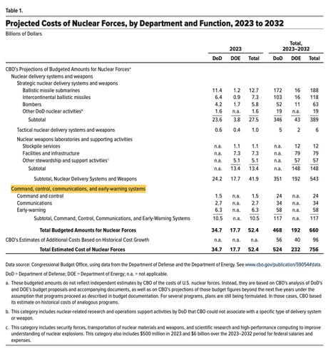 Koszt nuklearnego dowodzenia, kontroli i łączności (nuclear command, control and communications, NC3) w latach 2023-2032 wyniesie 117 miliardów dolarów. Oznacza to, że koszty w porównaniu z poprzednimi szacunkami, sprzed dwóch lat, wzrosną o 23 miliardy dolarów.