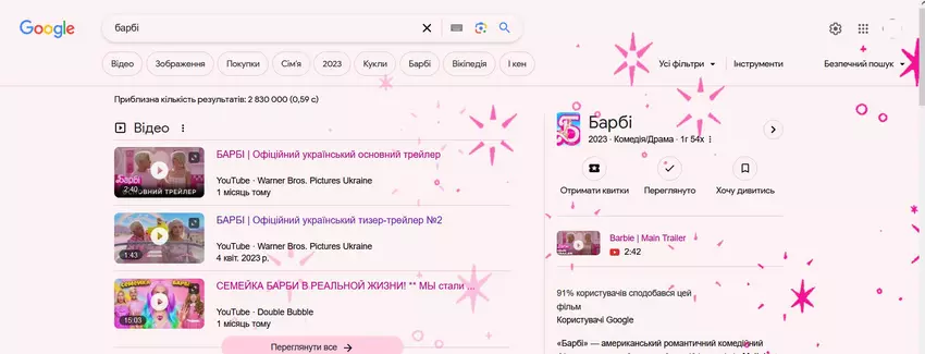 Oczywiście techno-gigant Google nie został pominięty i na cześć premiery filmu dodał "passaholic" do swojej wyszukiwarki. Jeśli w pasku wyszukiwania wpiszesz "Barbie" lub nazwiska aktorów Margot Robbie i Ryana Goslinga, na stronie pojawią się różowe fajerwerki, a wyszukiwarka zostanie zabarwiona na różowo. Działa to w przypadku zapytań w dowolnym języku.