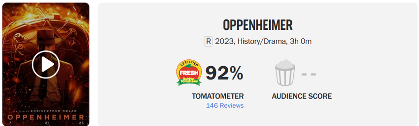 W serwisie Rotten Tomatoes film uzyskał ocenę 92%. Chwalono również grę aktorską, oprawę wizualną, fabułę i biografię głównego bohatera, nazywając projekt "filmem naszych czasów". Oczywiście byli tacy, którym film się nie podobał i pisali, że Oppenheimer zbyt często czuje się jak trzygodzinny artykuł na Wikipedii, ale generalnie krytycy i dziennikarze byli zadowoleni.
