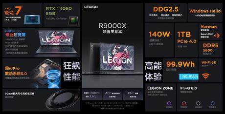 Po Xiaoxin Pro 2023, Lenovo ogłosiło również laptopa do gier Legion R9000X 2023.