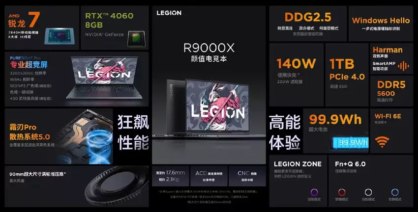 Lenovo Legion R9000X 2023: wyświetlacz 165 Hz, układ Ryzen 7 7840H i ładowanie 140 W