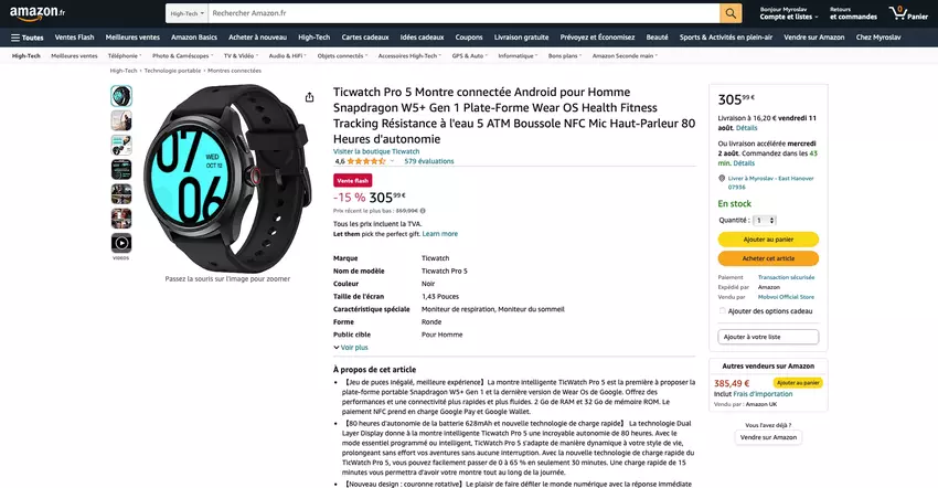 Mówimy o TicWatch Pro 5. Zegarek jest dostępny tylko w kolorze czarnym i kosztuje 159,99 € 169,99 €, -6% 159,99 € 169,99 €, -6%.