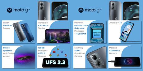 Moto G14: wyświetlacz FHD+, układ Unisoc T616, bateria 5000 mAh i aparat 50 MP za 120 USD