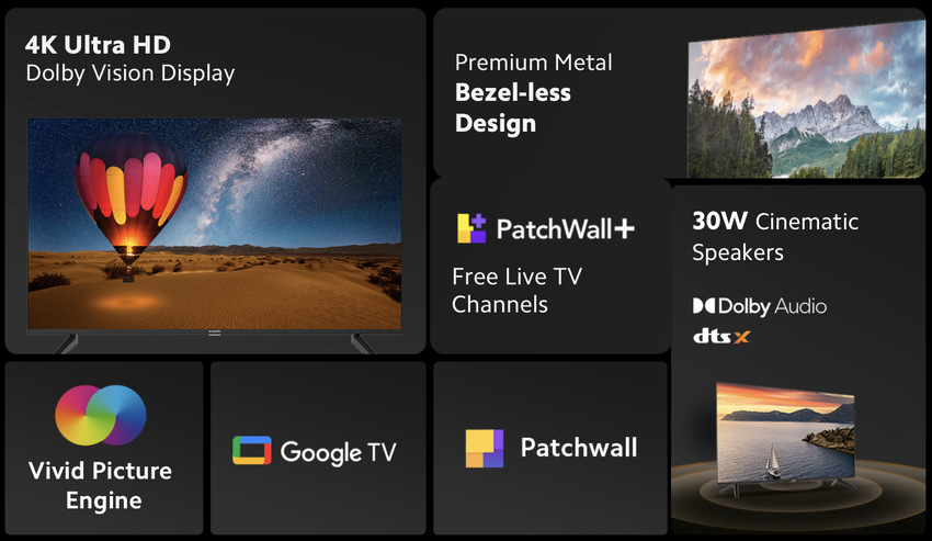 Nowe produkty są wyposażone w procesor A55 w połączeniu z grafiką Mali G52 MP1, 2 GB pamięci RAM i 16 GB pamięci masowej. Telewizory wyposażono w łączność Wi-Fi 802.11 ac (2,4/5 GHz), Bluetooth 5.0, HDMI 2.1 z eARC, porty USB, AUX i Ethernet. Urządzenia są wyposażone w głośniki stereo o mocy 30 W. Obsługują technologie Dolby Audio, DTS Virtual:X i DTS X. Po wyjęciu z pudełka telewizory są dostarczane z systemem operacyjnym Google TV i powłoką PatchWall.