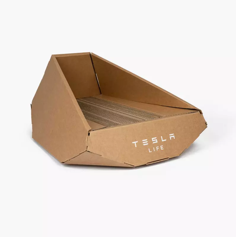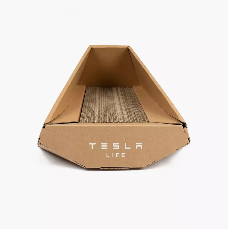 Jest to wielofunkcyjne tekturowe legowisko dla kota, które zostało wykonane na wzór elektrycznego pickupa Cybertruck. Najwyraźniej zespół Tesli pomyślał, że skoro firma stale przesuwa terminy i kilka lat po oficjalnym ogłoszeniu nie rozpoczęła masowej produkcji pickupów, to ten Cybertruck wystarczy.