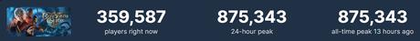 Wcześniej maksymalna liczba graczy wynosiła 814 tysięcy, a w niedzielę projekt Larian Studios przyciągnął 875,343 tysięcy jednoczesnych graczy.