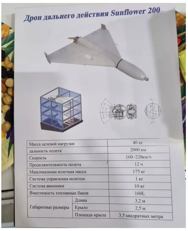 Według producenta, dron może przelecieć do 2000 kilometrów. Dron waży 175 kg i może przenosić do 40 kg materiałów wybuchowych. Dla porównania, Shahed 136 ma głowicę o wadze 50 kg. Prędkość maksymalna Sunflower-200 wynosi 220 km/h. Rozpiętość skrzydeł wynosi 2,5 metra, a długość korpusu 3,2 metra. Inne dane techniczne drona nie są jeszcze dostępne.