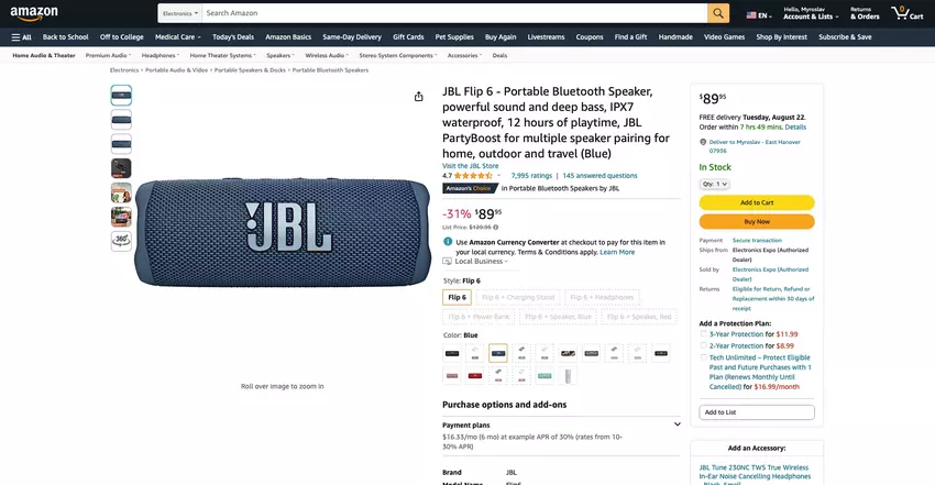 Za 40 USD zniżki: JBL Flip 6 ze stopniem ochrony IP67 i do 12 godzin pracy na baterii jest dostępny na Amazon w promocyjnej cenie
