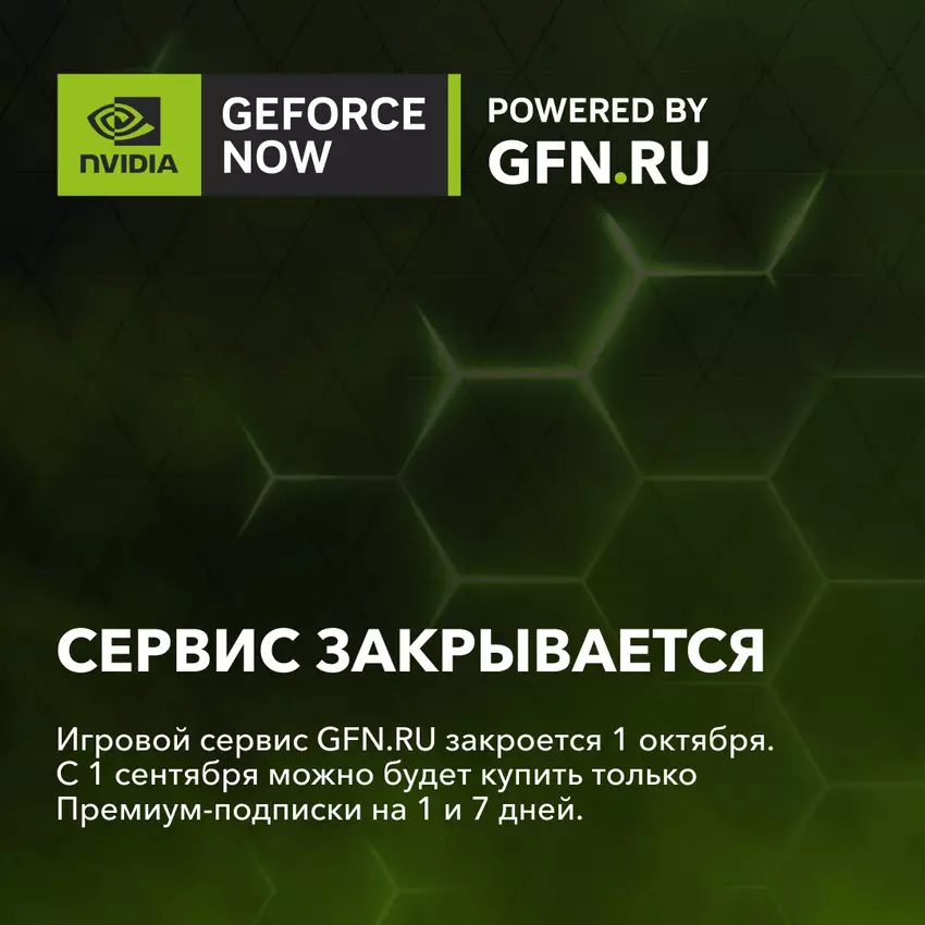 Usługa gier strumieniowych GeForce Now została uruchomiona w Rosji w październiku 2019 roku. Od 1 września 2023 r. nowi użytkownicy nie będą mogli rejestrować się na platformie. Ponadto sprzedaż subskrypcji zostanie wstrzymana.