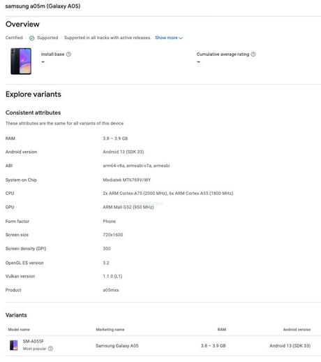 Samsung Galaxy A05 pojawił się w Konsoli Google Play: budżetowy smartfon z układem MediaTek Helio G85 i baterią 5000 mAh