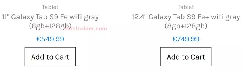 Według przecieków Galaxy Tab S9 FE z 11-calowym ekranem i modyfikacją 6/128 GB będzie sprzedawany za 549 euro. Jeśli chodzi o 12,4-calowy Galaxy Tab S9 FE+, otrzyma 8 GB pamięci RAM i taką samą pamięć. Nowość będzie kosztować 749 euro.