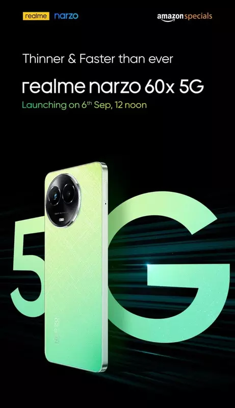 To już oficjalne: realme Narzo 60x z ekranem 120 Hz, układem MediaTek Dimensity 6100+ i ładowaniem 33 W zostanie zaprezentowany 6 września.